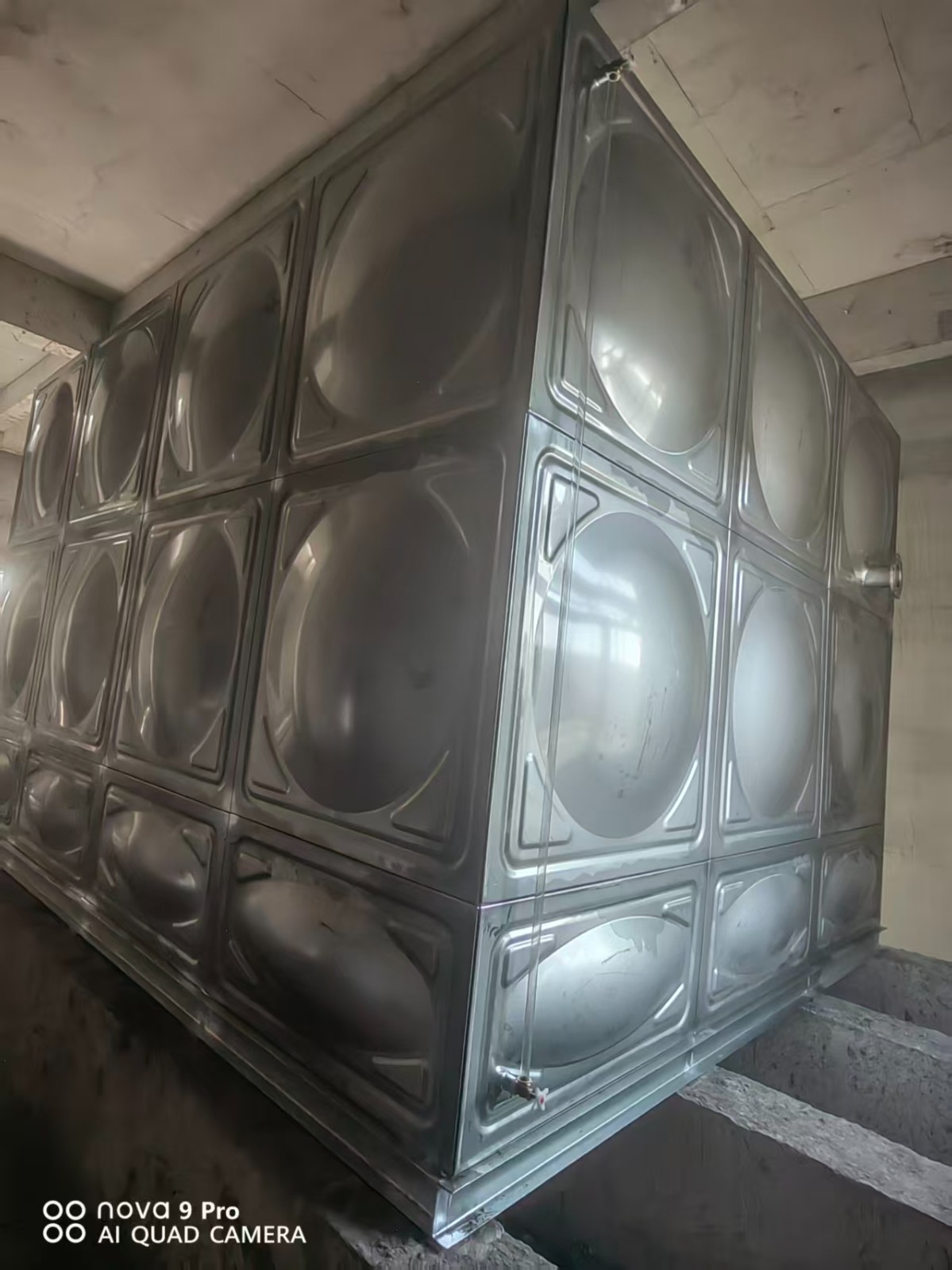 不銹鋼的水箱原材料不同,含鎳量不同,防腐性能也不同,山東騰翔均采用 SUS304不銹鋼板,精工模壓成 1x1 米、1x0.5 米和 0.5x0.5 米的標準板塊,可根據(jù)客戶需求定制不同規(guī)格,散件發(fā)貨,現(xiàn)場或廠內(nèi)采用氬弧焊接組裝,高強度的沖壓板與水箱內(nèi)部分布的不銹鋼拉筋支撐承受壓力均勻合理,滿足了箱體堅固耐用的要求,適用于醫(yī)院,賓館,學校,居民樓及食品加工,醫(yī)療衛(wèi)生等對水質(zhì)要求加高的場所。